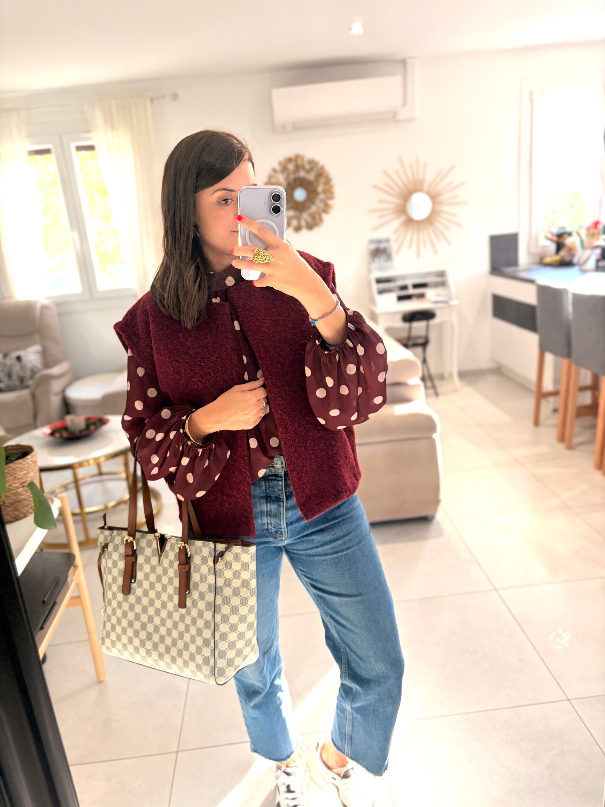 Osez le charme rétro avec cette blouse fluide bordeaux à pois écrus. Son imprimé intemporel s’associe à une coupe moderne et ample, pour un style à la fois élégant et décontracté. Parfaite pour dynamiser vos looks de bureau comme vos sorties.